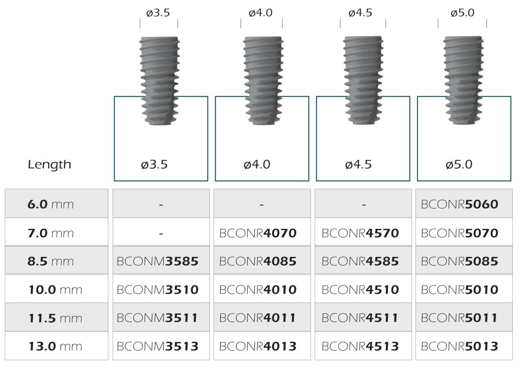 for connecting the bone graft. The Implants are equipped with uniform connection platform that